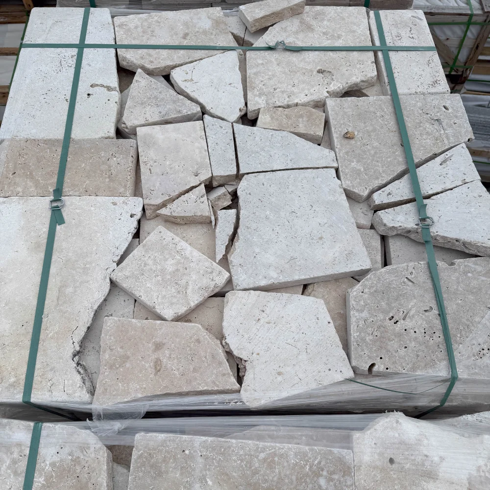 Travertin divoký řez Ivory Classic Mix je jedinečný přírodní kámen v béžových tónech, který zaujme nepravidelným tvarem a autentickým vzhledem. Povrch dlaždic je nevyplněný a bubnovaný, což jim dodává rustikální, přírodní charakter. Díky zlomeným hranám (minimálně 2 na dlaždici) vzniká efekt „crazy paving“, který podtrhuje originalitu každého prostoru.