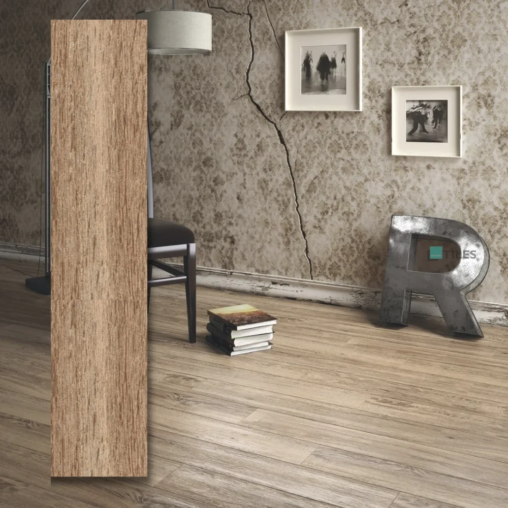 - Autentický vzhled dřeva silná >: Díky vzoru dřeva dodává tato dlažba interiéru hřejivý, útulný charakter, který je ideální pro milovníky rustikálního designu.