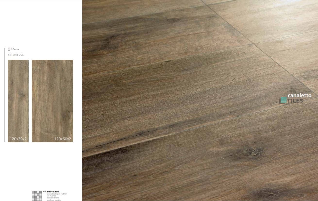 Kameninové dlaždice In Wood Canaletto jsou kombinací jedinečného kouzla přírody s odolností kameninového materiálu. Díky hnědé barvě a protiskluzovému povrchu přináší jedinečnou estetiku a bezpečnost do každého interiéru.