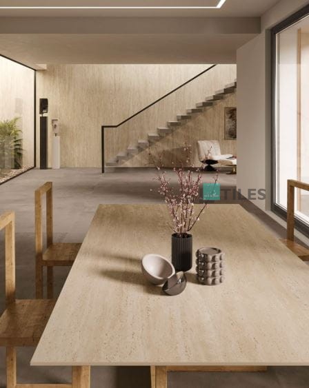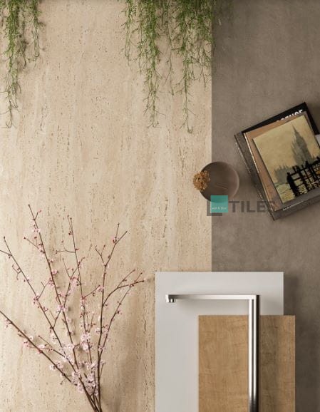- Barva: Teplý béžovo-pískový odstín, připomínající přírodní travertin.